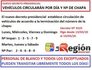 Los personales de Blanco y exceptuados podrán circular todos los días. Así también los casos de emergencia de salud debidamente justificados.