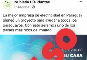 La Administración Nacional de Electricidad (ANDE) desmintió que impulse un proyecto de inversión, el cual se viralizó en las redes sociales.