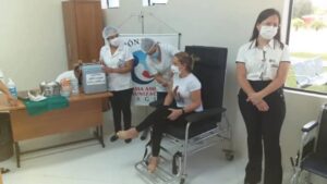 La neumóloga Liliana Chaparro fue la primera en recibir la dosis en Caaguazú, luego siguió la bioquímica Paola Bogado del Laboratorio Biomolecular del nosocomio ovetense.