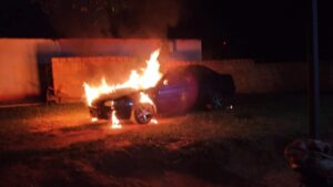 El automóvil del comunicador social de la localidad de Yhú, Francisco Gamarra se incendió totalmente en la madrugada de este jueves.