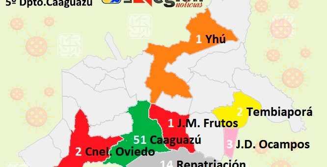 Locales / Regionales 5 mayo 2020 por Francisco Insfrán · Published 5 mayo 2020 · Last modified 6 mayo 2020 74 Casos Positivos en 5º Dpto. Caaguazú