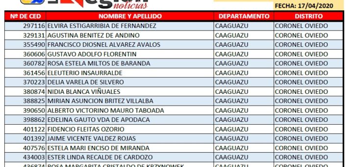 Locales 18 abril 2020 por Francisco Insfrán · Published 18 abril 2020 Listado de Beneficiarios de Pytyvö Coronel Oviedo