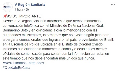 Locales 4 abril 2020 por Francisco Insfrán · Published 4 abril 2020 · Last modified 5 abril 2020 No hay ningún plan de albergar en Cnel. Oviedo a connacionales que ingresaron del Brasil.