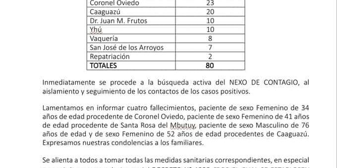 Locales 11 marzo 2021 por Francisco Insfrán · Published 11 marzo 2021 Reportan 80 nuevos casos de Covid en el departamento Caaguazú