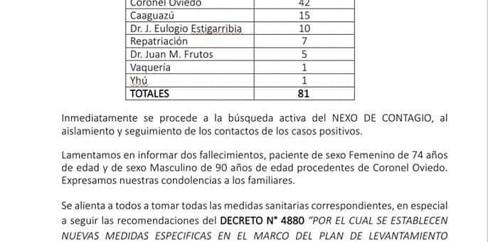 Locales 10 marzo 2021 por Francisco Insfrán · Published 10 marzo 2021 · Last modified 30 marzo 2021 Reportan 81 nuevos casos de Covid en el departamento Caaguazú