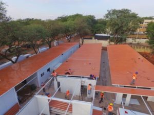La construcción de los hospitales de contingencia en Ineram y en Itauguá avanza con la instalación de los techos de los futuros pabellones. A la fecha se tiene una ejecución del 30% en estas obras.