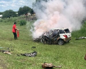 Un automóvil se incendió tras chocar contra un tractocamión y su conductor falleció a raíz del siniestro. El hecho se registró hoy a las 14:30 aproximadamente, sobre la Ruta IV, Gral. José E. Díaz, a la altura del Km 19, en Guazú Cuá.