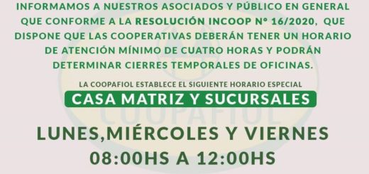 Cooperativa Coopafiol comunica a sus socios sus horarios de atención.