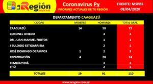 Nuevo tablero marca 110 casos positivos en Departamento Caaguazú