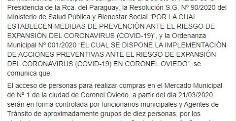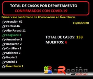 Mientras que en el departamento de Ñeembucú se ha confirmado el primer caso positivo con el virus.