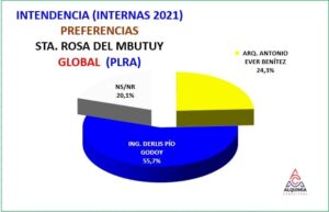 El actual intendente de Santa Rosa del Mbutuy Derlis Pío Godoy ganaría las internas del PLRA en dicha ciudad según los números de una encuesta realizada por Alquimia Consultora semanas atrás.