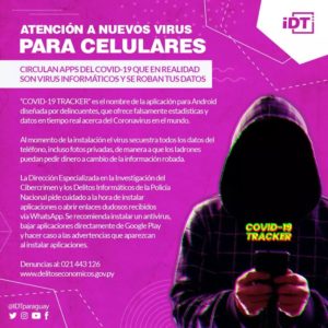 El departamento de delitos económicos del Paraguay advierte sobre una APPS llamado COVID-19 Tracker, la misma es un virus informático creado por delincuentes para robar tus datos del móvil.