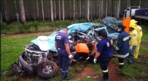 Agentes del Puesto Policial 009 de la colonia Guyraungua´i al ser avisado del hecho a través de una llamada telefónica anónima, acudieron al lugar constatando lo ocurrido; encontraron los rodados en la cuneta del sector oeste con daños materiales y en el habitáculo de la camioneta Nissan el conductor Sixto Rodas sin signos de vida.
