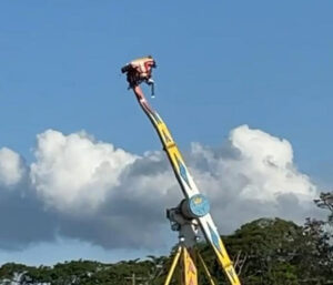 El juego de kamikaze, en el que se quedó colgada una joven por varios minutos, fue clausurado en Canindeyú. La mujer vivió momentos de terror debido a que se le desprendió el cinturón de seguridad por un error del maquinista.