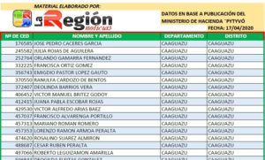 Listado de Beneficiarios del programa Pytyvó del Ministerio de Hacienda actualizado al 17/04/2020.