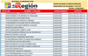 Listado de Beneficiarios del programa Pytyvó del Ministerio de Hacienda actualizado al 17/04/2020.
