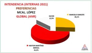 Una vez más Alquimia predice que Néstor ganaría las internas en el mencionado Distrito según la encuesta realizada a finales del mes de mayo, dónde la aceptación de Martínez supera el 50% mientras que su contrincante ocasional Marcelo Garcete Da Silva no supera el 30%, según explicó el representante de la encuestadora, el rango de indecisos no genera preocupación en filas oficialistas ya que los mismos se irán disipando proporcionalmente a los porcentajes de cada movimiento llegado las elecciones.
