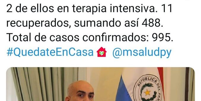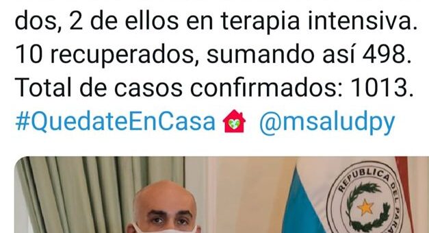 Nacionales 1 junio 2020 por Francisco Insfrán · Published 1 junio 2020 Sube a 995 la cantidad de casos confirmados en Paraguay