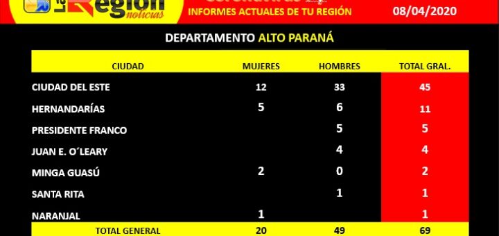 Regionales 8 mayo 2020 por Francisco Insfrán · Published 8 mayo 2020 · Last modified 9 mayo 2020 #Coronavirus #Alto_Paraná #La_Región