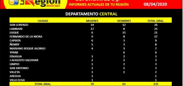 Nacionales 8 mayo 2020 por Francisco Insfrán · Published 8 mayo 2020 · Last modified 9 mayo 2020 #Central #Coronavirus en #La_Región