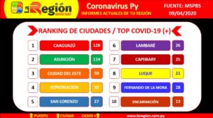 En el tablero del ranking ingresa una nueva ciudad Encarnación con 13 casos positivos.