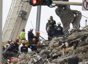 La parte que mira al mar del condominio Champlain Towers se desplomó la madrugada del 24 de junio y redujo a escombros más de 50 unidades del total de 136 que tenía, y desde entonces las cuadrillas de rescate bregan por hallar posibles sobrevivientes.