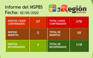 En la fecha se procesaron 424 muestras de las cuales 37 dieron positivos de Covid-19 sumando a 370 los casos en el país. Cuatro nuevos recuperados sumando 119 hasta la fecha.
