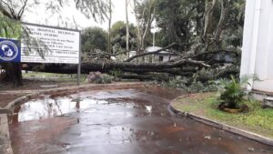 En la imagen se puede ver los árboles caídos en el predio del Hospital Polivalente de Coronel Oviedo (IPS), por suerte no dejaron daños de consideración.