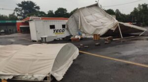 El puesto para toma de muestras exprés en la Policía Caminera, en San Lorenzo, se vio afectado por los fuertes vientos del temporal de la noche de ayer y madrugada de este domingo.