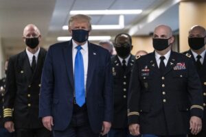 Informes de prensa de esta semana dijeron que sus asesores prácticamente le rogaron que cediera y usara un tapabocas en público y se dejara fotografiar con él, ya que los casos de coronavirus se disparan en algunos estados y Trump continúa muy por debajo del demócrata Joe Biden en las encuestas para la elección de noviembre.