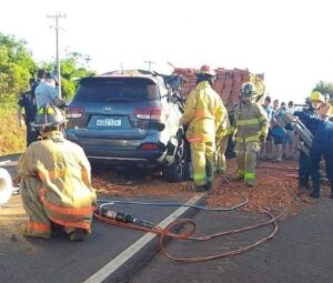 Según el reporte de la Policía Nacional, ambos vehículos se encontraban circulando por la ruta PY06 con dirección este, cuando en un momento dado, al alcanzar las inmediaciones del puente Tembe’y, en el kilómetro 143, la camioneta Kia chocó contra la parte trasera del camión y quedó incrustada en la carrocería.